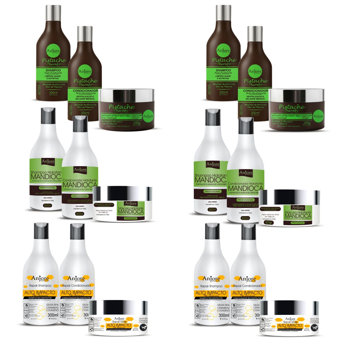A linha Mandioca Anjore Profissional foi desenvolvida para todos os tipos de cabelos e em especial para cabelos e ressecados e sem vida. Ela é rica em vitaminas e nutrientes essenciais ao fortalecimento e crescimento dos fios. Contém extrato de mandioca, um ativo rico em vitaminas A e C e minerais essenciais à saúde dos fios. Produto Vegano sem parabenos.
