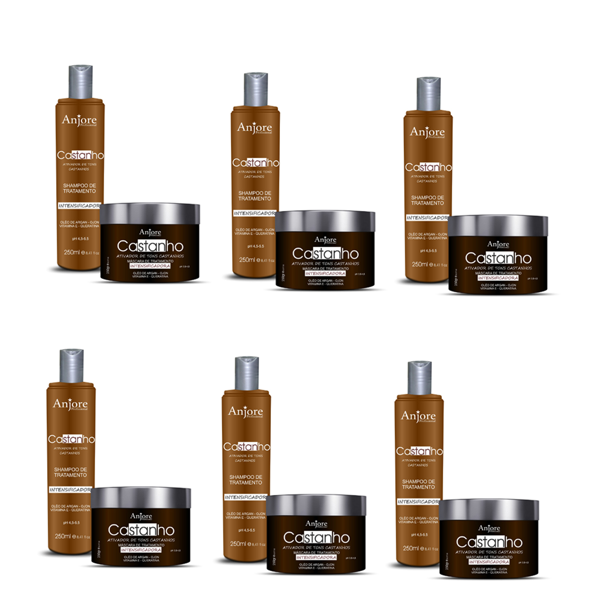 Dê nova vida aos seus cabelos castanhos com o Kit Matizador Castanho Anjore, um tratamento completo que realça a cor, nutre profundamente e fortalece os fios. Ideal para tons castanhos e marrons, naturais ou coloridos, esse kit entrega resultados visíveis já nas primeiras aplicações!