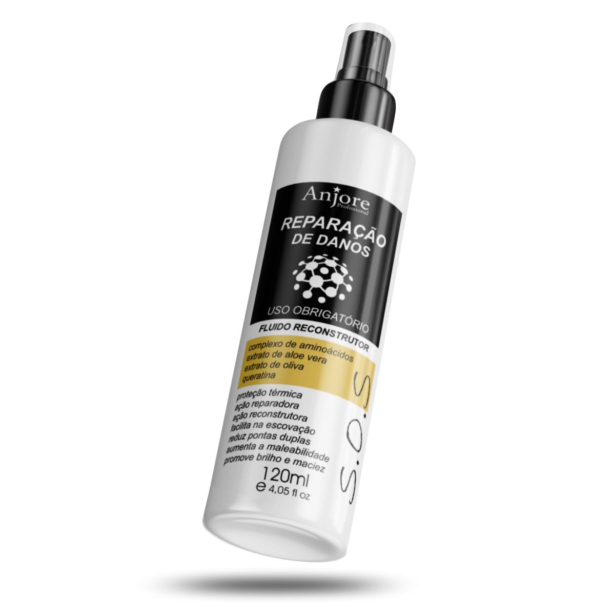 Fluido Reparação Reconstrutora Anjore 120ml com Aminoácidos, Queratina e Aloe Vera O Fluido Reconstrutor Reparação de Danos Anjore foi desenvolvido especialmente para tratar cabelos danificados, fragilizados ou quimicamente tratados. Sua fórmula concentrada combina um poderoso complexo de aminoácidos, extrato de oliva, aloe vera e queratina, que atuam profundamente na fibra capilar, promovendo reconstrução, hidratação, nutrição e fortalecimento dos fios. O resultado é um cabelo mais resistente, saudável, com brilho e maciez desde a primeira aplicação. Principais Ativos: - Complexo de Aminoácidos: Repara a estrutura interna dos fios, fortalecendo e prevenindo a quebra. - Extrato de Oliva: Rico em antioxidantes, nutre profundamente e sela as cutículas. - Aloe Vera: Hidrata intensamente e auxilia na regeneração do couro cabeludo e fios. - Queratina: Reconstrói e reestrutura a fibra capilar danificada, devolvendo elasticidade e brilho. Principais Benefícios: - Reparação Intensiva: Repara e fortalece a estrutura capilar - Hidratação Profunda: Nutre os fios, proporcionando maciez e brilho - Proteção Térmica: Cria uma barreira contra danos causados por ferramentas quentes - Fórmula Leve: Não pesa os fios - Ação Rápida: Resultados visíveis já na primeira aplicação. Modo de Uso: - Lave os cabelos com um shampoo suave para remover impurezas e resíduos e enxágue. - Agite bem o frasco do Fluido Reconstrutor Reparação de Danos Anjore antes de usar. - Borrife uma quantidade adequada do produto, distribuindo uniformemente pelo comprimento e pontas do cabelo, evitando a raiz. - Deixe o produto agir por 5 a 15 minutos, dependendo da intensidade dos danos dos fios. - Enxágue bem com água morna até remover todo o produto. - Para um efeito extra de hidratação, finalize com um condicionador leve. - Finalize como desejar. Use o fluido reconstrutor uma vez por semana ou conforme a necessidade do seu cabelo.