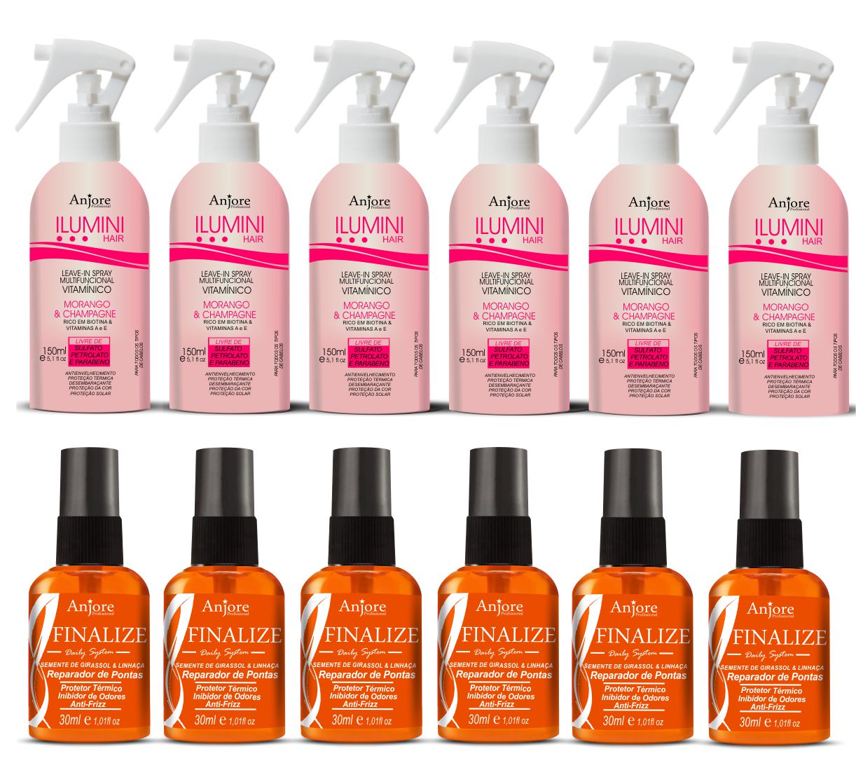 6 - Leavein Spray Vitamínico Biotina Ilumini Hair Morango & Champanhe Anjore 150ml
