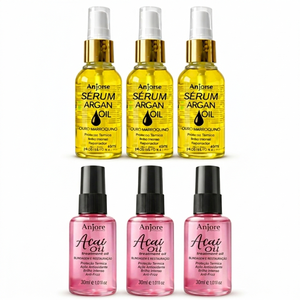 Você Receberá: 3 - Óleo De Açaí Blindagem e Restauração 30ml Anjore 3 - Óleo De Argan Serum Oil Reparação e Anti Frizz 45ml Anjore Óleo De Açaí Blindagem e Restauração 30ml Anjore Desperte a verdadeira força e beleza dos seus cabelos com o Óleo de Açaí Blindagem e Restauração da Anjore. Formulado com o poder antioxidante do açaí, esse óleo age profundamente na fibra capilar, proporcionando uma blindagem contra agressões externas e promovendo a restauração total dos fios. Seu uso contínuo confere uma aparência saudável, vibrante e protegida, sem pesar ou oleosidade. Benefícios: - Blindagem Completa: Cria uma camada protetora que defende os fios contra danos causados por poluição, calor e outros agentes externos. - Restauração Profunda: Reconstrói e fortalece a estrutura capilar, devolvendo a saúde e vitalidade dos cabelos. - Brilho Intenso e Natural: Deixa seus cabelos radiantes, com um brilho natural e sem frizz. - Controle de Frizz: Domina os fios rebeldes, garantindo um visual alinhado e suave ao toque. Modo de Uso: 1. Aplique algumas gotas do Óleo de Açaí Blindagem e Restauração nas palmas das mãos. 2. Distribua uniformemente nos cabelos secos ou úmidos, focando nas pontas e áreas mais danificadas. 3. Para um resultado ainda mais eficaz, finalize com secador ou chapinha para selar a proteção e potencializar o brilho. Pode ser usado diariamente, seja como um tratamento de nutrição ou como finalizador para cabelos mais controlados e radiantes. Ideal para todos os tipos de cabelo, o Óleo de Açaí Blindagem e Restauração é a escolha perfeita para quem deseja cabelos protegidos, restaurados e com um brilho de dar inveja. Óleo De Argan Serum Oil Reparação e Anti Frizz 45ml Anjore Transforme seus cabelos com o poder da natureza! O Óleo de Argan Serum Oil da Anjore é um tratamento intensivo que proporciona reparação profunda, brilho radiante e um controle excepcional do frizz. Formulado com a mais pura essência de Argan, conhecido por suas propriedades nutritivas e hidratantes, ele age diretamente nos fios, recuperando a saúde capilar e devolvendo a maciez e o toque sedoso que você sempre sonhou. Benefícios: - Reparação Intensa: Fortalece os fios danificados e recupera a vitalidade perdida. - Controle do Frizz: Mantém o cabelo disciplinado e sem frizz por mais tempo, mesmo em ambientes úmidos. - Brilho Radiante: Deixa seus fios com um brilho deslumbrante, sem pesar. - Hidratação Profunda: Forma uma camada protetora, mantendo a umidade dos fios e evitando o ressecamento. Modo de Uso: 1. Aplique algumas gotas do Óleo de Argan Serum Oil nas palmas das mãos. 2. Distribua uniformemente nos fios secos ou úmidos, do comprimento até as pontas. 3. Para um resultado ainda mais potente, utilize antes da escova ou chapinha, protegendo o cabelo e garantindo um acabamento perfeito. Pode ser usado diariamente para controle de frizz e nutrição contínua. Ideal para todos os tipos de cabelo, o Óleo de Argan Serum Oil é a solução completa para fios saudáveis, brilhantes e com aparência impecável todos os dias. Composição: Dimethicone (And) Cyclopentasiloxane (Dimeticona E Ciclopentasiloxano), Parfum (Fragrância), Argania Spinosa Kernel Oil (Óleo De Argan), Ci12055 (Amarelo Solvente 14), Butylphenyl Methylpropional (Lilial), Alpha-Isomethyl Ionone (Metil Ionona Gama), Coumarin (Cumarina), Hydroxycitronellal (Hidroxicitronelal), Hydroxyisohexyl 3- Cyclohexene-Carboxaldehyde (Liral), Linalool (Linalol).
