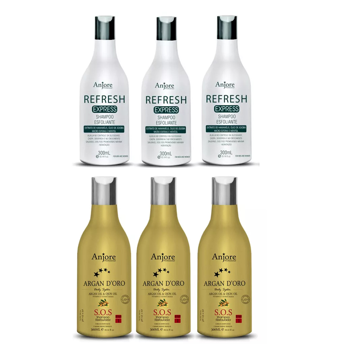 3 - Shampoo Esfoliante Refresh Anjore 300ml com Microesferas de Arroz Mentol Hamamélis Óleo de Jojoba