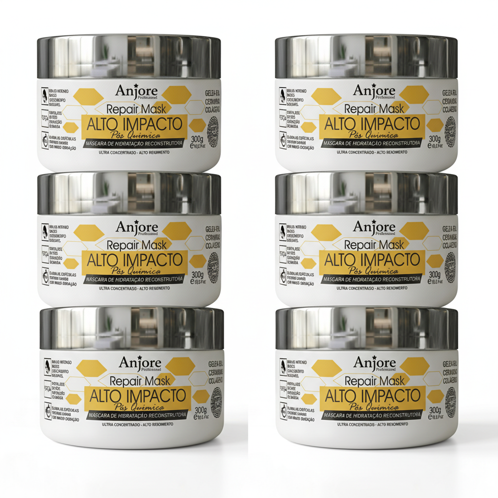 Você Receberá: 6 - Máscara Alto Impacto Efeito Teia Colágeno e Geleia Real 300gr Anjore Transforme seus fios com a Máscara Alto Impacto Efeito Teia da Anjore! Formulada com Geleia Real, Ceramidas e Colágeno, oferece um tratamento profundo que proporciona hidratação intensa e reparação capilar de forma imediata. Esses poderosos ativos atuam juntos para revitalizar e fortalecer os fios, trazendo mais resistência, maciez e brilho. A Geleia Real nutre profundamente, restaurando a saúde do couro cabeludo e dos fios, enquanto as Ceramidas formam uma barreira protetora, evitando a perda de hidratação e agindo contra os danos externos. O Colágeno confere elasticidade e firmeza, devolvendo a estrutura natural dos cabelos danificados. Sua exclusiva tecnologia de efeito teia envolve os fios com uma ação de nutrição prolongada, criando uma camada protetora que age contra danos causados por agentes externos, como calor, poluição e química. Ideal para cabelos ressecados, ela restaura a vitalidade dos fios, devolvendo a suavidade e o movimento natural. Potencialize o cuidado com seus cabelos e sinta a diferença no toque e no brilho. Cabelos renovados, sem frizz, com um efeito sedoso e controlado. Experimente o poder de um tratamento completo com a Máscara Alto Impacto Efeito Teia Anjore e conquiste fios extraordinários e poderosos! Modo de Uso: 1. Lave os cabelos com um shampoo de sua preferência para remover impurezas e preparar os fios para a hidratação profunda. 2. Aplique a Máscara Alto Impacto Efeito Teia nos cabelos úmidos, mecha por mecha, distribuindo de forma uniforme. 3. Massageie suavemente com as pontas dos dedos, garantindo que o produto envolva completamente os fios. 4. Deixe agir por 5 a 10 minutos para que os ativos como Geleia Real, Ceramidas e Colágeno penetrem profundamente nos fios, proporcionando um efeito nutritivo e restaurador. 5. Enxágue abundantemente com água morna ou fria para selar as cutículas e garantir brilho e maciez. 6. Finalize como desejar, com escova ou ao natural. Para um efeito ainda mais intenso, use a máscara 1 a 2 vezes por semana, conforme a necessidade de seus fios. Composição: Aqua, Álcool Cetoestearílico, Amido de Milho, PEG-90M, Cloreto de Cetrimônio, Óleo Mineral, Propilenoglicol, Poliquatérnio-55, Álcool Cetílico, Glicerina, Perfume, Metossulfato de Berrentrimônio, Extrato de Mel, Extrato de Própolis, Extrato de Pólen, Extrato de Geléia Real, Óleo de Soja, Glucosil Ceramida, Colágeno Hidrolisado, Acetato de Tocoferol, Queratina Hidrolisada, Lanolina PEG-75, Glicol Distearato, EDTA Dissódico, Ácido Cítrico, BHT, Metilcloroisotiazolinona, Metilisotiazolinona, Cumarina, Linalol, Hidroxicitronelal.
