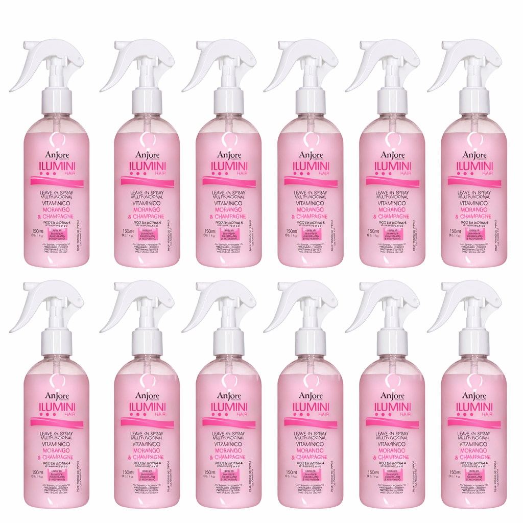 Você Receberá: 12 - Leavein Spray Vitamínico Biotina Ilumini Hair Morango & Champanhe Anjore 150ml Saudável com Leveza e Perfume Incrível! Dê um cuidado completo aos seus cabelos com o Leave-in Spray Multifuncional Anjore Morango & Champanhe! Com fórmula líquida, leve e inovadora, ele não pesa nos fios, não deixa oleoso e ainda garante hidratação, nutrição e proteção térmica, promovendo um crescimento saudável e acelerado. - Proteção térmica: forma uma barreira contra os danos do calor de secadores, chapinhas e modeladores - Textura líquida ultraleve – ideal para todos os tipos de cabelo, inclusive finos e oleosos - Fragrância deliciosa e sofisticada de morango com champanhe - Enriquecido com biotina, vitamina A e vitamina E – estimulam o crescimento, fortalecem e restauram os fios - Ação prolongada: vitaminas que mantêm os cabelos nutridos por mais tempo - Desembaraça, condiciona e revitaliza sem pesar Beleza, proteção e tratamento em um só produto! Modo de Uso: Aplique o Leave-in Anjore Morango & Champanhe nos cabelos úmidos ou secos. Borrife no comprimento e pontas, mantendo distância de cerca de 20cm. Espalhe com os dedos ou pente e não enxágue. Finalize como desejar: ao natural ou com secador, chapinha ou babyliss – protegendo seus fios do calor. Composição: Água, Álcool Cetoestearílico, Álcool cetílico, Cloreto de Cetrimônio, Perfume, Áido Cítrico, Óleo de semente de Helianthus Annus (girassol), EDTA dissódico, BHT, Metilcloroisotiazolinona, Metilisotiazolinona, Extrato de Fragraria Vesca, Acetato de Tocoferol, Bis-CetearylAmodimeticone, Ceteareth-7, Ceteareth-25, Dimeticonol, TEA-Dodecilbenzenossulfonato, Trideceth-12, Amodimeticona, Propilenoglicol, Álcool, CI 16255, PCA Sódico, Lactato de Sódio, Arginina, Ácido Aspártico, PCA, Glicina, Alanina, Serina, Valina, Prolina, Treonina, Isoleucina, Histidina, Fenilalanina, Extrato de Medicargo Sativa, Extrato de Humulus Lupulus, Extrato de Rosmarinus Officinalis, Extrato de Malilotus officinalis, Álcool Benzílico, Ácido Desidroacético, Benzoato de Benzil, Butilfenil Metilpropional, Citronelol, Geraniol, HexIl Cinamal, HIdroxIcitronelal, Linalol.